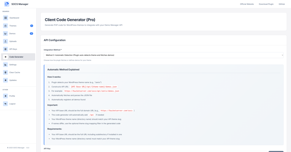 SmartOCS Cloud is a premium self-hosted PHP system for one-click remote deployment and centralized demo file management for WordPress themes and plugins.